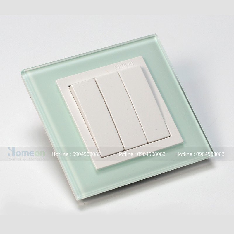 bộ công tắc ba 1 chiều viền mặt kính